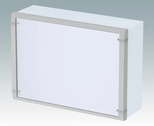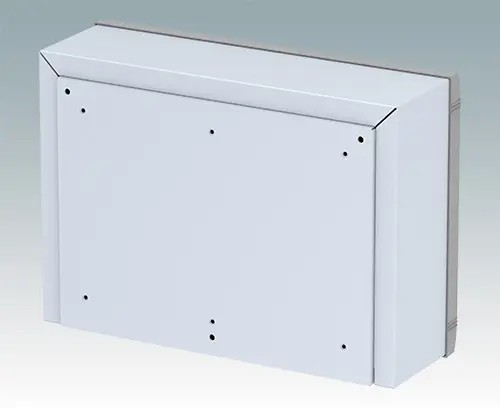Modern aluminium wall mount enclosure for indoor electronics equipment. The enclosure provides total access to the electronics during installation on the wall. Stylish design with die cast front bezel, top cover and 'L' shape rear panel. Order front panels separately.
