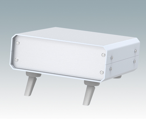 Stylish and modern case feet with tilt legs for canting. Universal design for fitting to any type of plastic or metal enclosure. Four part assembly with foot body, push-in anti-skid TPE pad, tilt leg with 120° rotation and self-tapping screw. Max. enclosure wall thickness 3 mm with screws provided (alternative screws can be supplied for larger wall thicknesses). Simply drill three holes per foot in the enclosure panel - see drawings for drilling details.