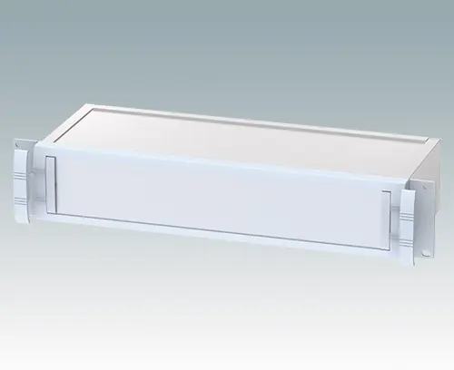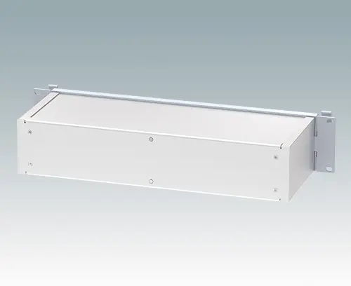 Modern and robust 19" rack case with integrated 'comfort handles'. All aluminium design with attractive die cast front bezel, extruded side panels with internal PCB/chassis guide rails, rear panel and flat top and base panel. Open front panel aperture means the case does not have to be removed from the rack in order to access the electronics. Base panel is punched to accept accessory tilt feet. Order front panels separately.