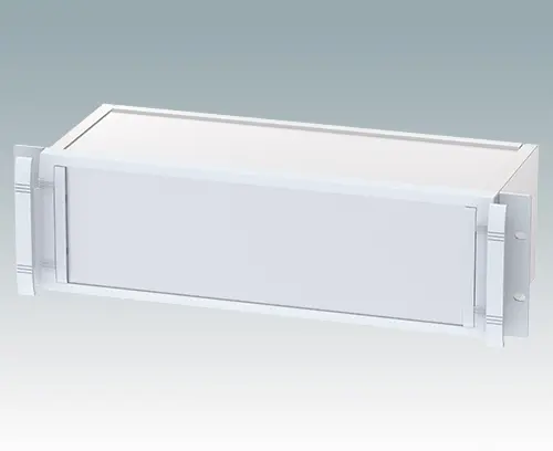 Modern and robust 19" rack case with integrated 'comfort handles'. All aluminium design with attractive die cast front bezel, extruded side panels with internal PCB/chassis guide rails, rear panel and flat top and base panel. Open front panel aperture means the case does not have to be removed from the rack in order to access the electronics. Base panel is punched to accept accessory tilt feet. Order front panels separately.
