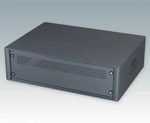 Modern and highly attractive 19" instrument enclosure for mounting 3U subracks (84HP), chassis or front panels. Conforms to DIN 41494 & IEC 297-1. Stylish front and rear bezels are fitted to the aluminium case body. Clip-on trims at the front and rear hide the assembly screws giving a very professional appearance. All case panels fitted with M4 threaded pillars for earth connection.