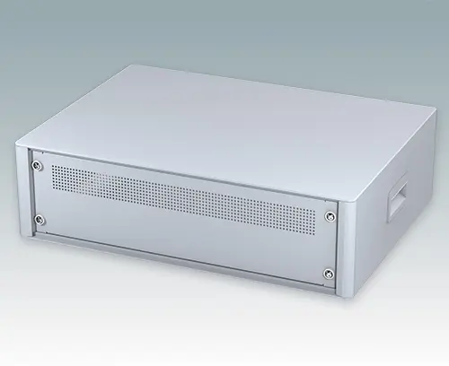 Modern and highly attractive 19" instrument enclosure for mounting 3U subracks (84HP), chassis or front panels. Conforms to DIN 41494 & IEC 297-1. Stylish front and rear bezels are fitted to the aluminium case body. Clip-on trims at the front and rear hide the assembly screws giving a very professional appearance. All case panels fitted with M4 threaded pillars for earth connection.