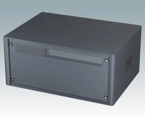Modern and highly attractive 19" instrument enclosure for mounting 5U subracks (84HP), chassis or front panels. Conforms to DIN 41494 & IEC 297-1. Stylish front and rear bezels are fitted to the aluminium case body. Clip-on trims at the front and rear hide the assembly screws giving a very professional appearance. All case panels fitted with M4 threaded pillars for earth connection.