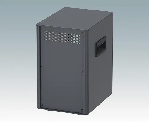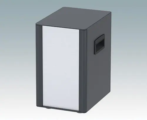 Highly attractive tower style aluminium enclosures for instrumentation. Space-saving footprint maximises tabletop or workstation space. Modern and cohesive design with no visible fixing screws. Diecast front and rear bezels fit flush in the case body. Snap-on front and rear trims hide the case and front panel screws. Ventilation holes in the base and rear panel. Internal chassis for mounting three or four shelves (accessories) for PCBs and assemblies. M4 earth points on all panels. Supplied with side handles and non-slip ABS feet. Order front panels, shelves and PCB guides separately. Order your own fully customised version.