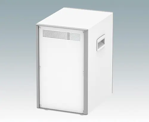 Highly attractive tower style aluminium enclosures for instrumentation. Space-saving footprint maximises tabletop or workstation space. Modern and cohesive design with no visible fixing screws. Diecast front and rear bezels fit flush in the case body. Snap-on front and rear trims hide the case and front panel screws. Ventilation holes in the base and rear panel. Internal chassis for mounting three or four shelves (accessories) for PCBs and assemblies. M4 earth points on all panels. Supplied with side handles and non-slip ABS feet. Order front panels, shelves and PCB guides separately. Order your own fully customised version.