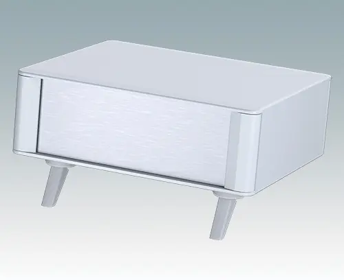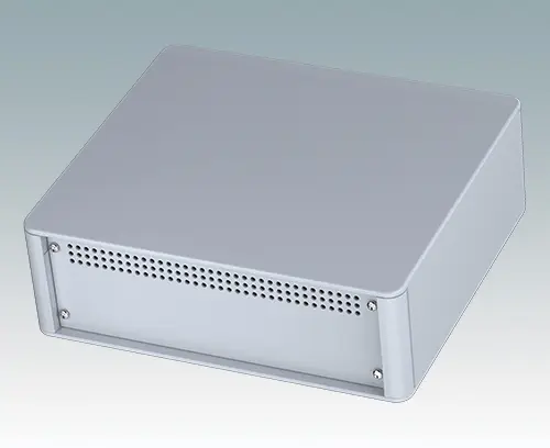 The case is supplied with a rear panel and four ABS feet with tilt legs. Ventilation slots are provided in the base and rear panel. Order front panels separately.