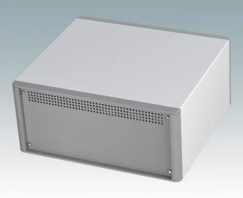 The case is supplied with a rear panel and four ABS feet with tilt legs. Ventilation slots are provided in the base and rear panel. Order front panels separately.