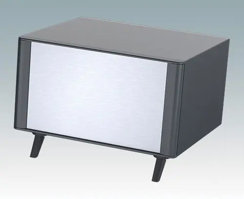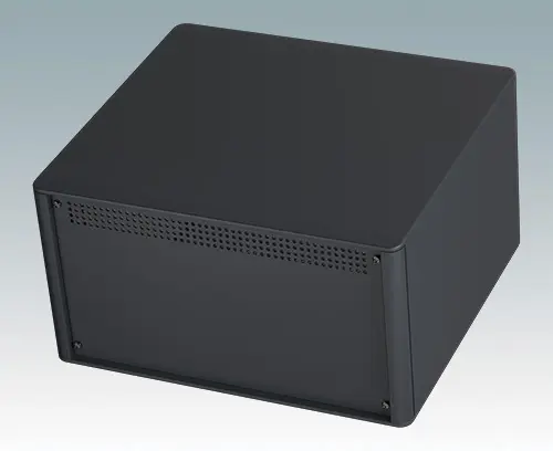 The case is supplied with a rear panel and four ABS feet with tilt legs. Ventilation slots are provided in the base and rear panel. Order front panels separately.