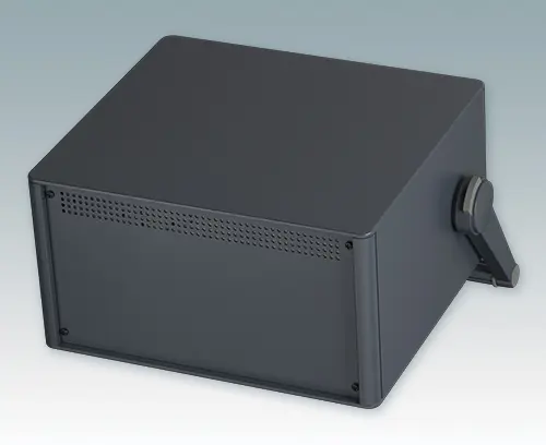 The case is supplied with a rear panel and four ABS feet with tilt legs. Ventilation slots are provided in the base and rear panel. Order front panels separately.