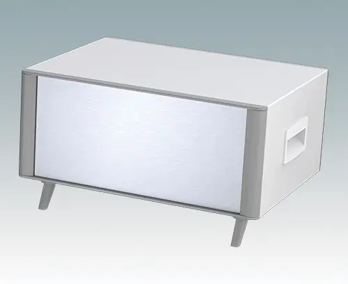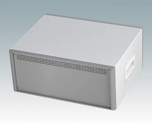The case is supplied with a rear panel, two ABS side handles and four ABS feet with tilt legs. Ventilation slots are provided in the base and rear panel. Order front panels separately.